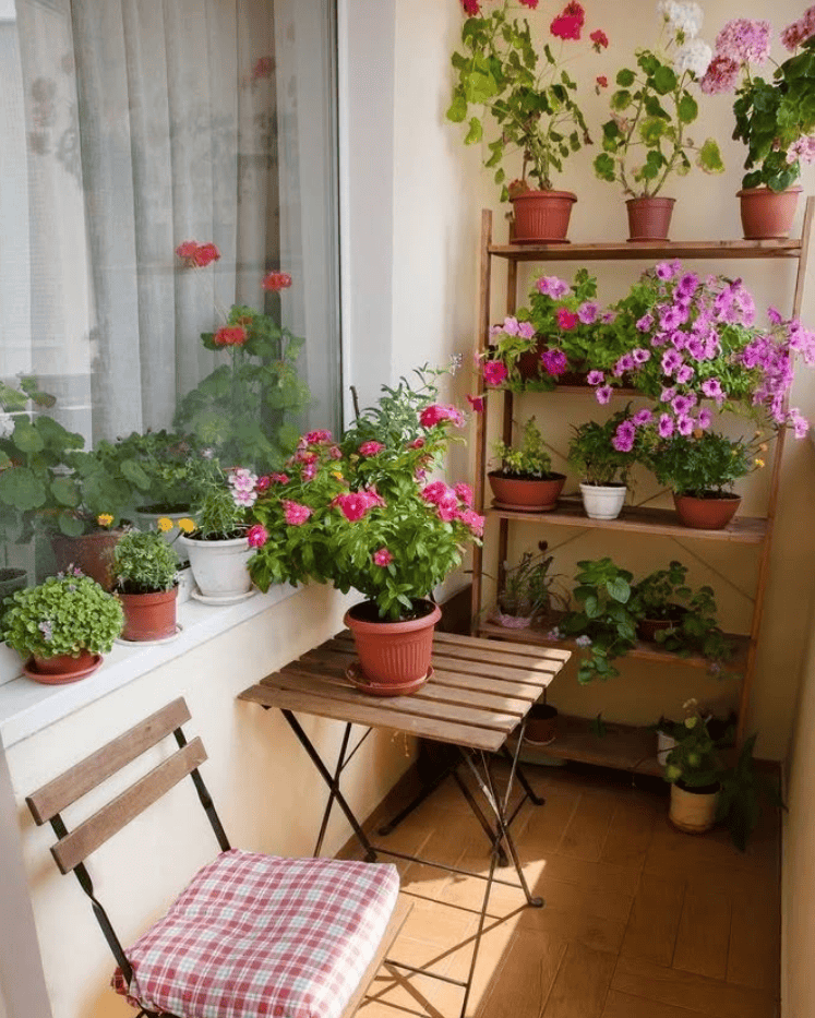 Cozy Flower-Filled Bistro Balcony