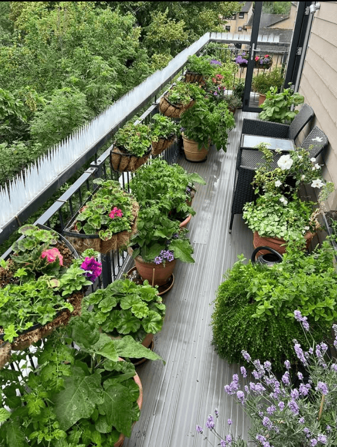 This layout works well if you want to grow food in containers, as each pot can be moved, rotated, or replaced as the seasons change, keeping the balcony productive throughout the year.