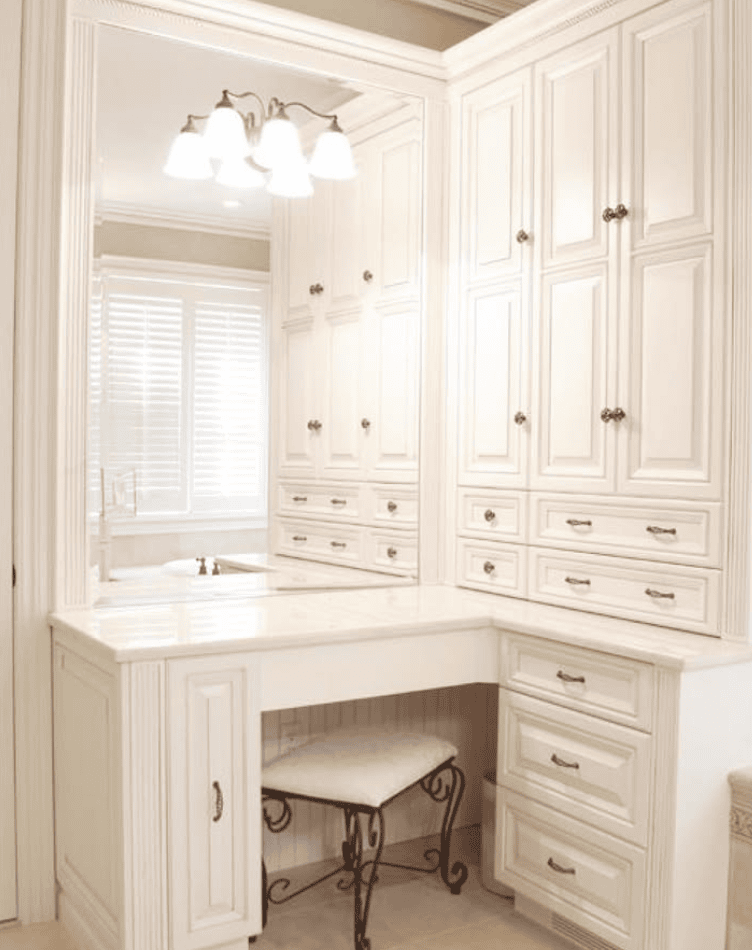 Transform unused corners, alcoves, or spaces beneath windows into chic mini-vanities. Custom or built-in dressing tables maximize awkward spaces beautifully, while a narrow table paired with a mirror can instantly create a cozy corner.