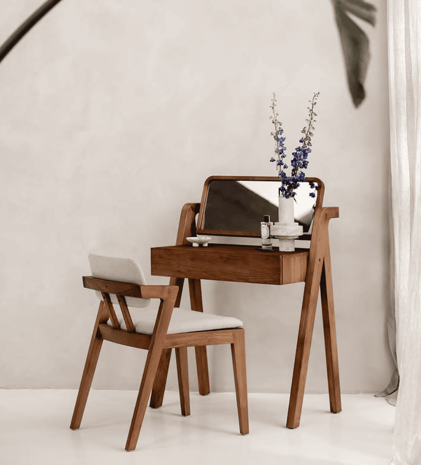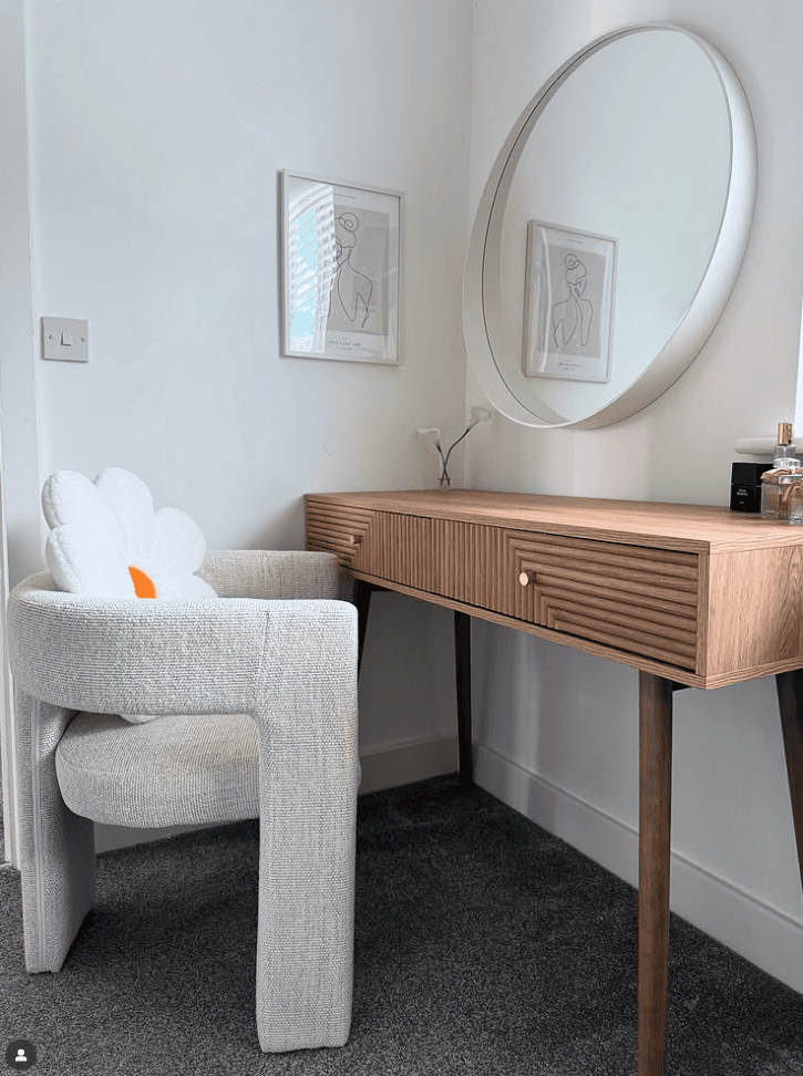Your dressing table should complement your existing decor while standing out as a design feature. A mid-century vanity suits neutral or Scandinavian interiors, while gold-framed mirrors and marble tops bring a touch of glamour.