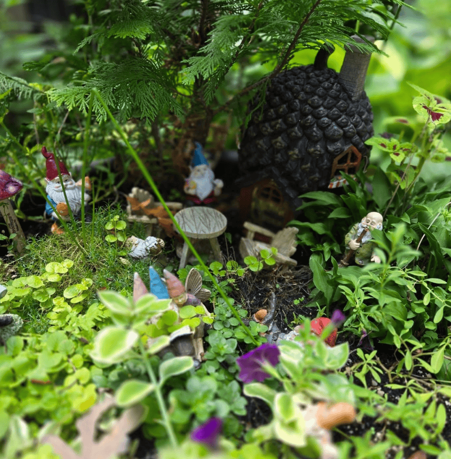 A fairy garden turns a small corner into a miniature storybook world.