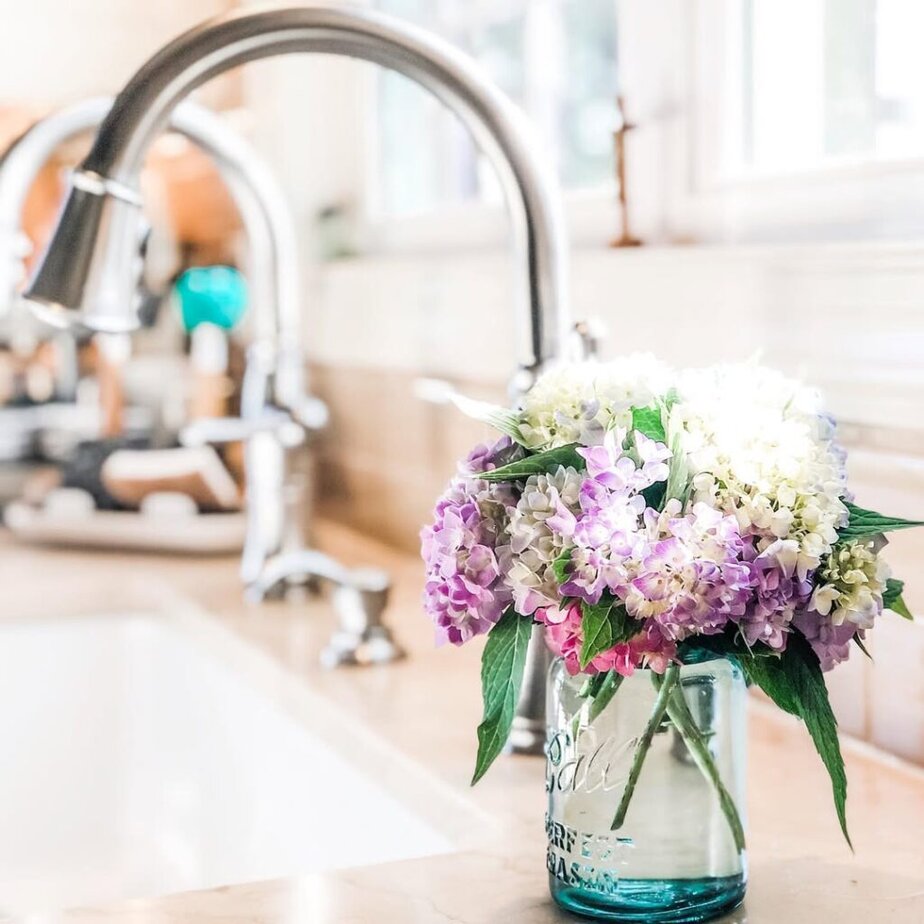 Keep it contained. Use one small planter or one vase, not multiple. Pair greenery with one other item, like a candle or canister, and leave the rest of the counter clear. That is how it looks intentional, not messy.